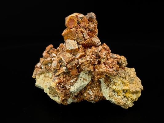 Vanadinite is a striking mineral known for its bold, structured appearance and naturally hexagonal crystals, often resembling tiny, stacked barrels or flat prisms. While it’s famous for fiery red specimens, many collectors treasure vanadinite’s more subtle and earthy tones — rich browns, rusts, golden ambers, and honey hues that evoke the warmth of desert landscapes and ancient stones.